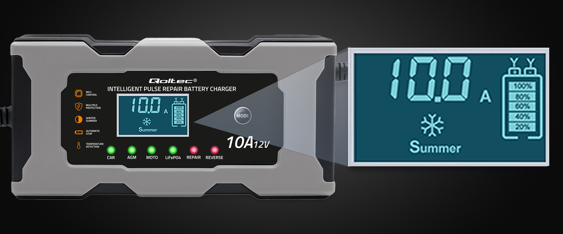 The intelligent Qoltec charger, with its 9-stage automatic charging mode with integrated desulphation and maintenance stage, provides exceptional battery protection and ensures optimum performance.