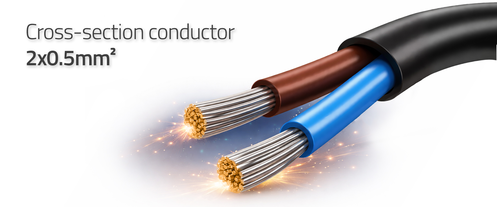 The exceptional quality of this cable, compliant with the HD3VVH2-F standard, guarantees durability and safety, even with intensive use. The robust, flexible polyvinyl chloride (PVC) insulation and two high-quality copper conductors ensure a stable power supply without the risk of overheating or failure. The appropriately selected 1.8 m cable length provides the freedom to connect devices in hard-to-reach places, eliminating the problem of bulky, tangled cables. The standard colour coding of the wires facilitates correct connection: brown – phase wire (L), blue – neutral wire (N).