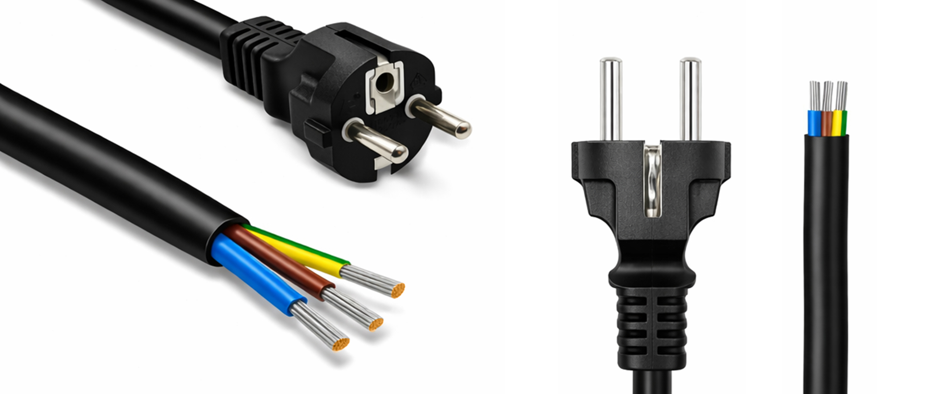 Functional power cord for connecting electrical devices to a 230V mains supply. Terminated on one side with a CEE 7/7 plug and on the other with free soldered stripped wires ready for installation. It is an excellent choice for installations requiring individual cable adjustment. Trust the quality that guarantees complete satisfaction!