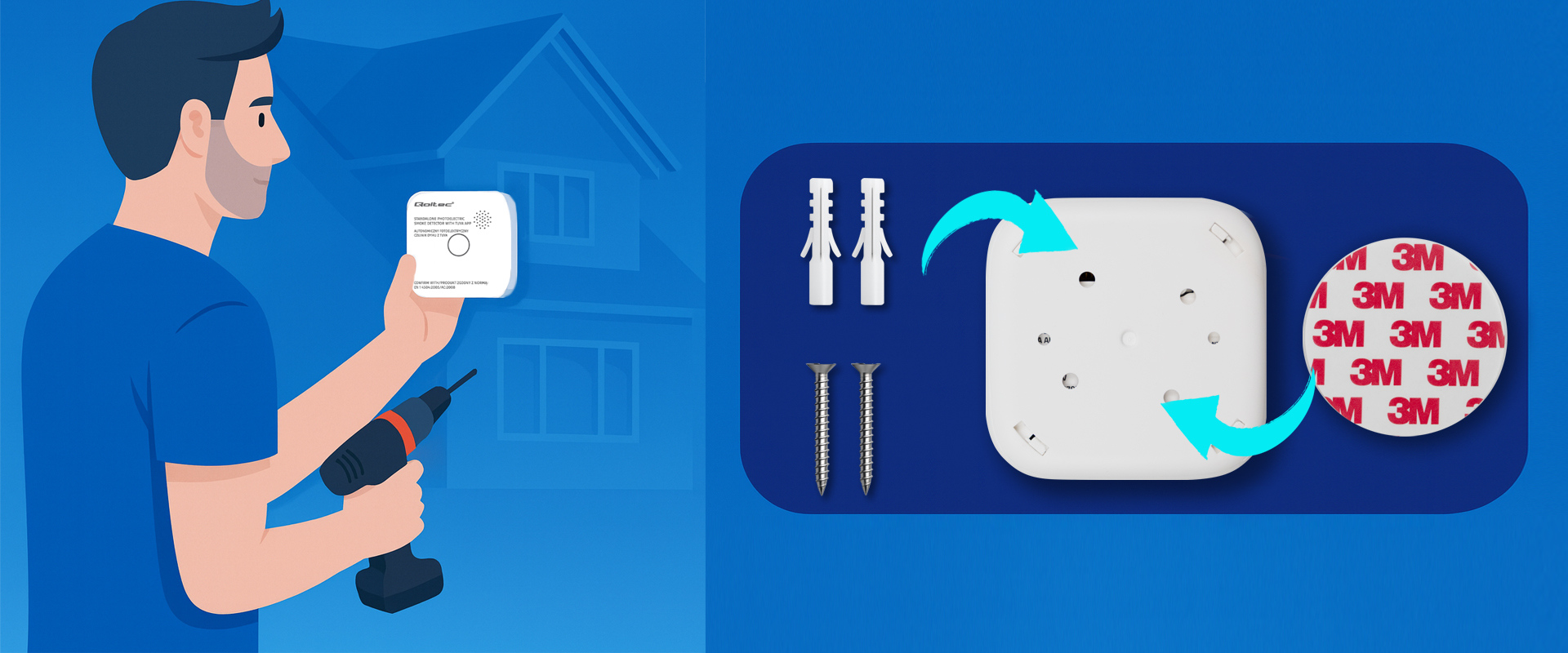 The certified Qoltec smoke detector reacts immediately to the appearance of smoke in the air, giving you time to react quickly and evacuate before the fire spreads. The device complies with EN 14604:2005/AC:2008 standards, which guarantees its quality and compliance with European safety standards. Thanks to the use of a modern optical sensor, the detector operates stably, accurately and reliably for many years. It operates independently of the mains power supply, ensuring full protection even in the event of a power failure.